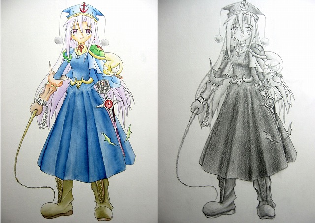 水彩(左)と鉛筆で描いてます。